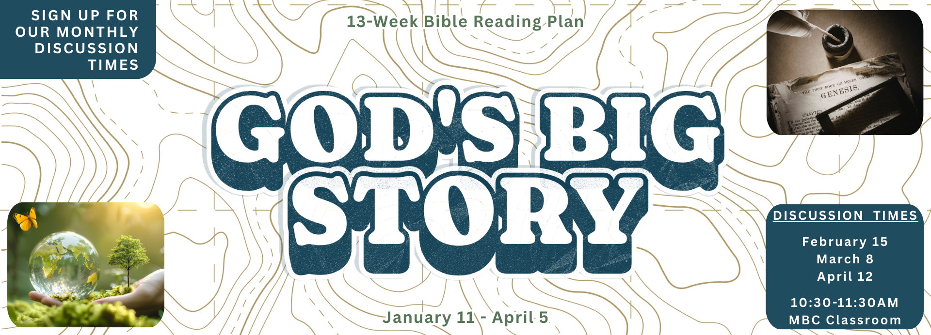 To help with that, on February 15th, March 8th, and April 12th we will be hosting gatherings during 2nd service for people who have been taking part in the reading plan to talk about what they have been learning.